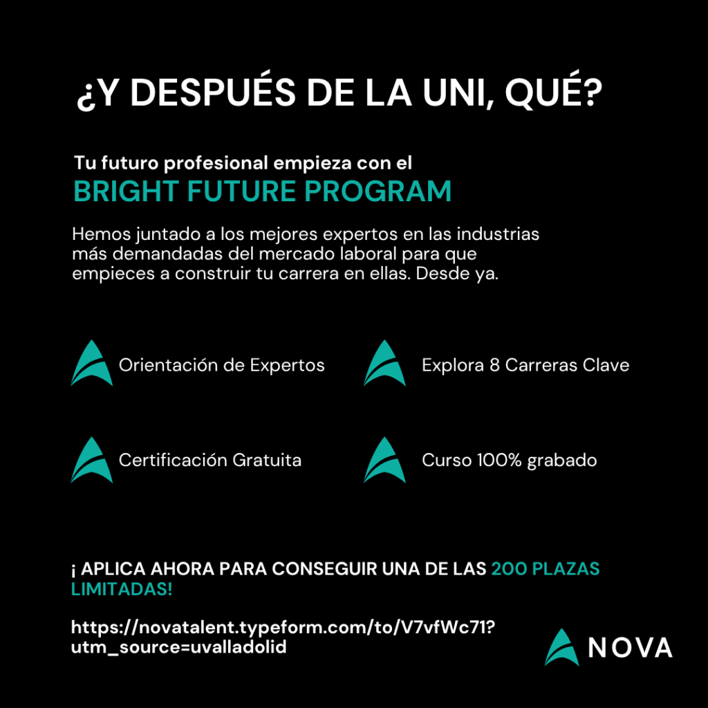 El Bright Future Program es un programa formativo (grabado) diseñado para impulsar la carrera profesional de los participantes. Su objetivo principal es equipar a los asistentes con las herramientas, conocimientos y estrategias necesarias para entender el mercado laboral y destacar en los procesos de selección de los sectores más demandados.